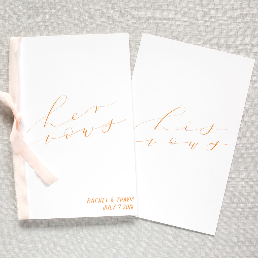 Vow books are written in pointed-pen calligraphy and made to order.
